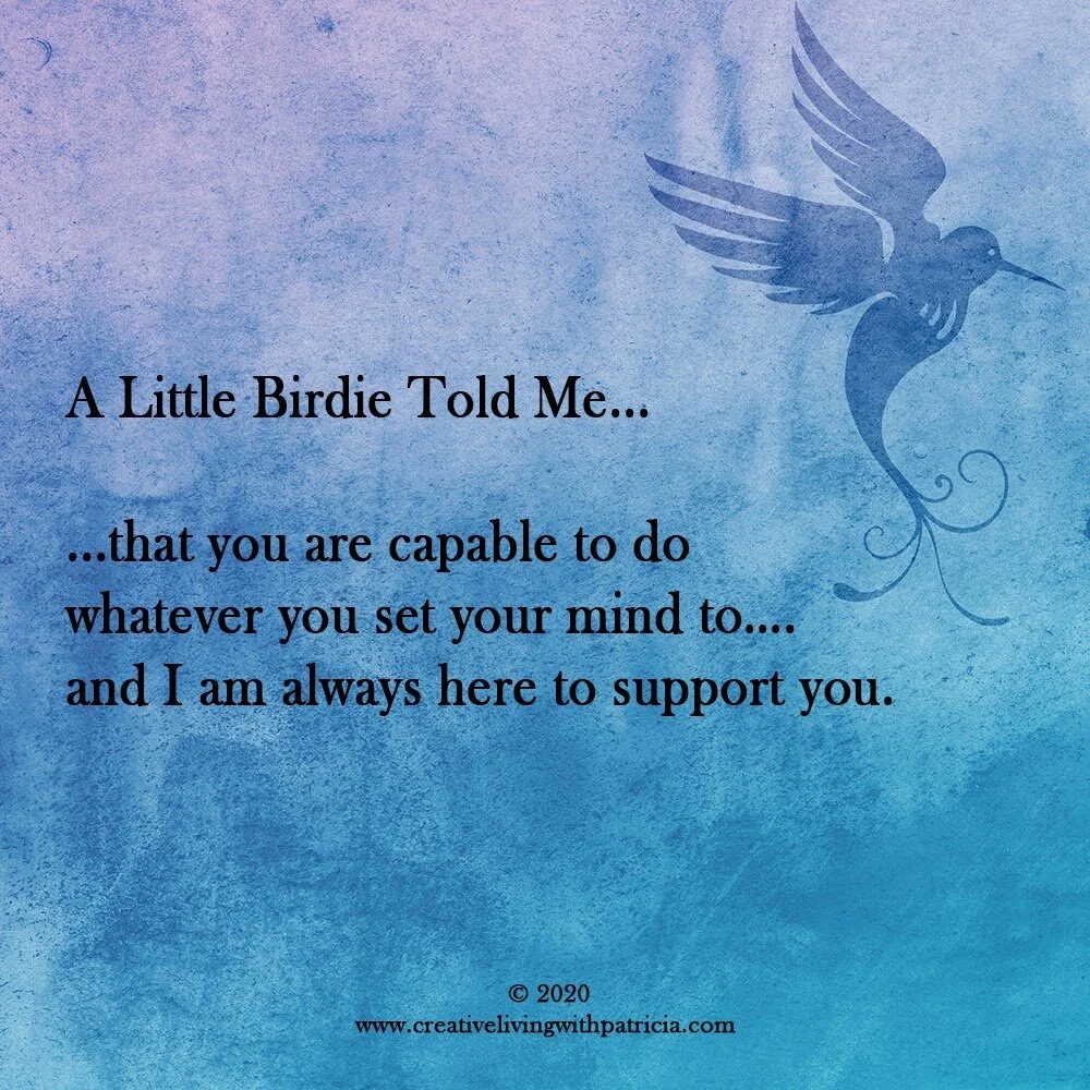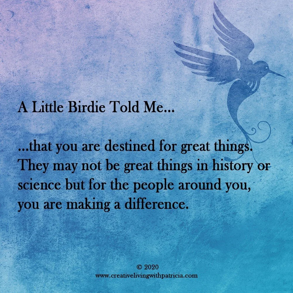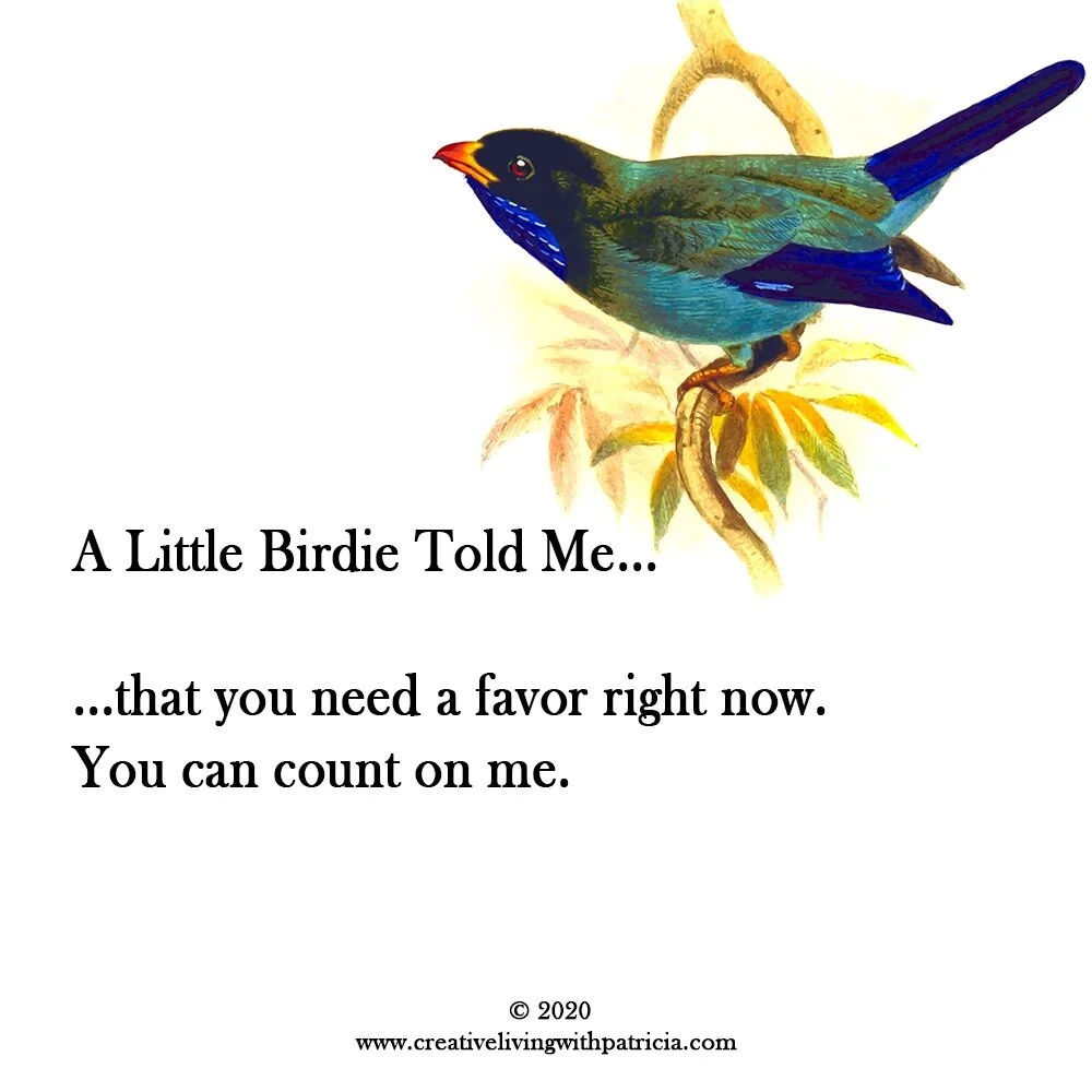 I remember how my mother would sweetly say to me, “A little birdie told me.” Her loving words finished the sentence in a way that warmed my heart. Here are some heartwarming “Birdie” messages to share with friends, family and coworkers.